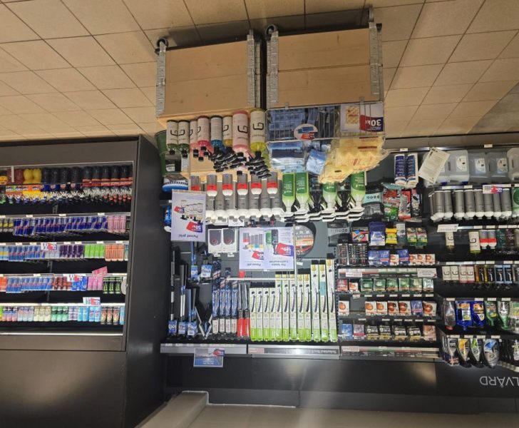 Inne i butiken finns ett tydligt fokus på enkla, lättillgängliga lösningar för bilägare. Hyllorna rymmer: